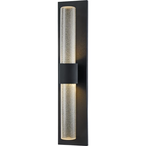 Likwid is a simplistic yet sophisticated wall mount series. Offered in an elegant Matte Black finish combined with a seeded water look glass shade. An LED non visible light source completes the style making it not only a beautiful piece but practical as well. It can be placed in both dry and damp locations.
