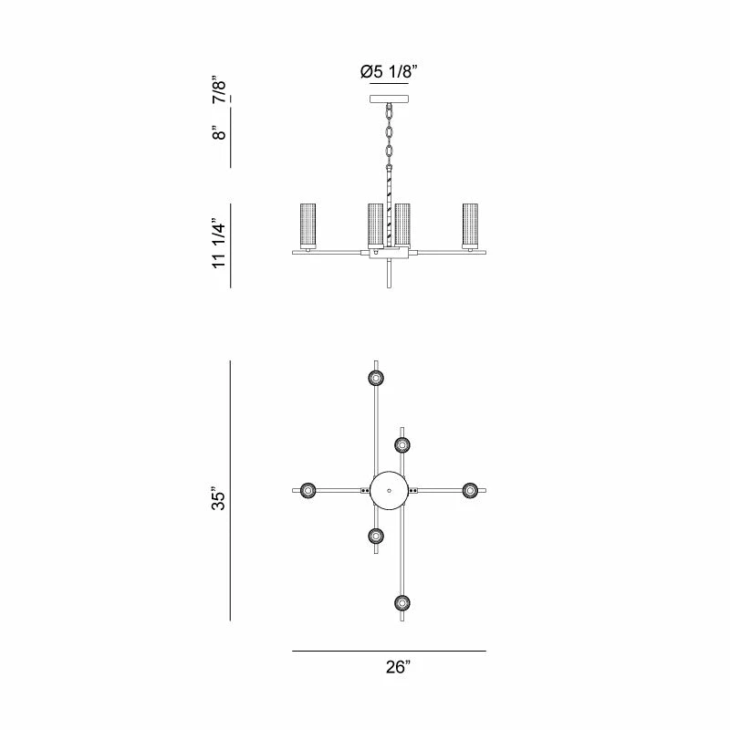 - Lamping: 6 x 60W Candelabra Base-E12 120V