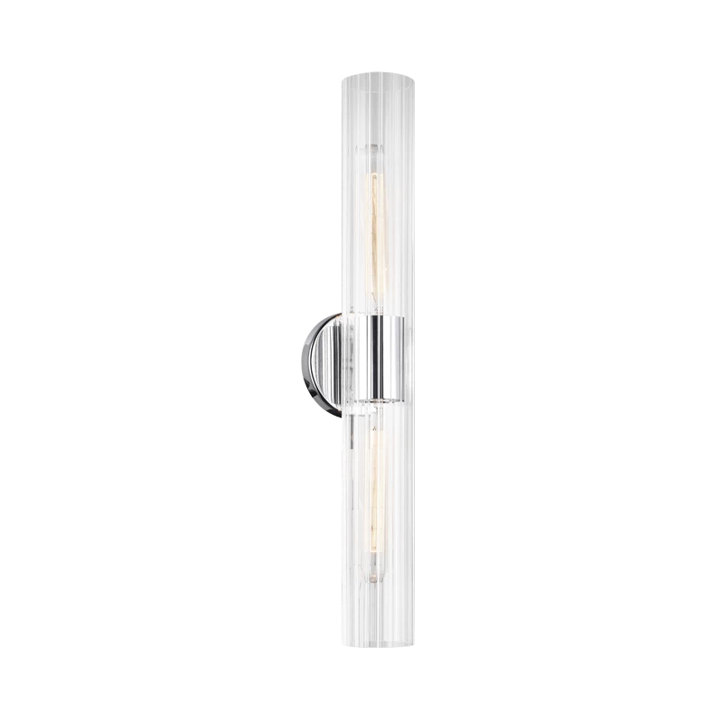 An elegant collection that features intricate detailing of clear ribbed glass. The versatility of this collection allows the fixtures to be mounted vertically and horizontally. Odette is available in 3 finishes: Aged Gold Brass, Black and Chrome as well as 2 sizes; a perfect touch to illuminate any space. Â