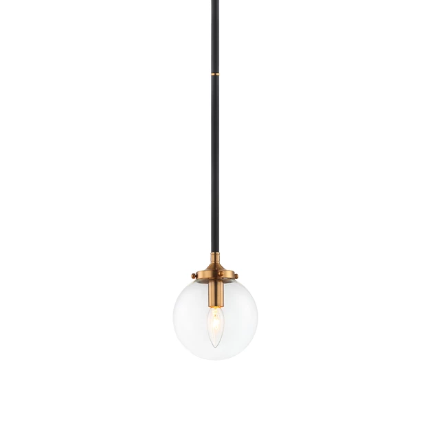 - Finish: Black/Aged Gold Brass, Clear Glass Shade