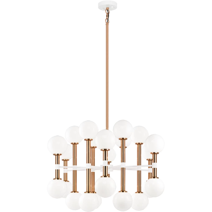 The abundant radiance of Stellar will give any room a bold, distinctive look. Inspired by the Mid-Century lamp post, this piece will stand out in any room. Available finishes: Aged Gold Brass with Matte White accents or Black with Chrome accents. A simple rod design completed with 4.3″ diameter Opal White Glass globes