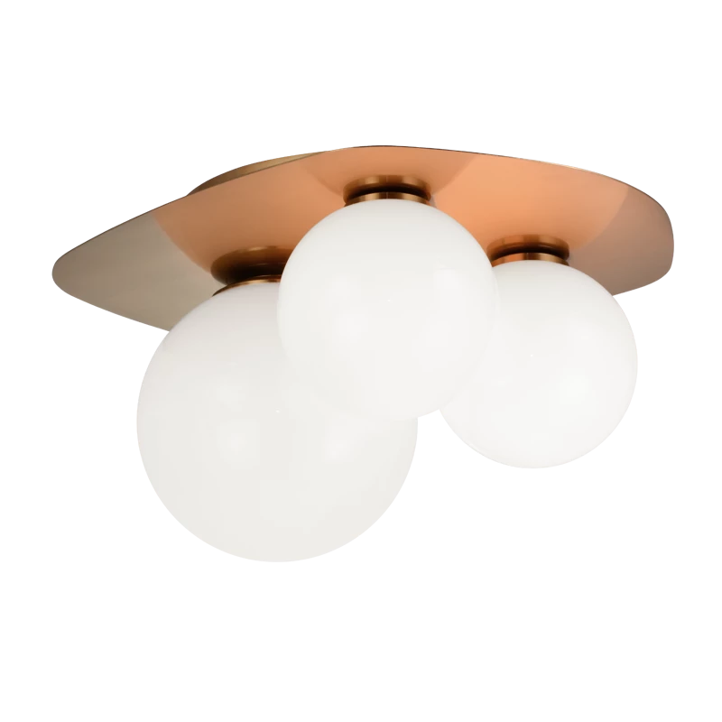 An 80’s inspired design collection. The unusual and unique shape of the canopy is highlighted by the bold contrast of the Opal glass. Razz is a versatile collection – Truly a statement piece. Available in vanity and flush mount.