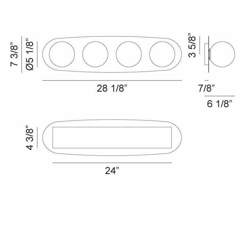 - Dimensions: 28 1/8″W x 7 3/8″H x 6 1/8″E