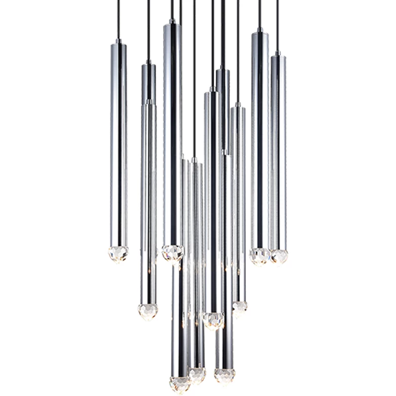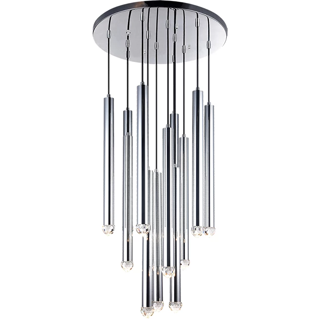 Inspired by the traditional windchime, Reign is designed with cylinders with an added detailed glass shade, paired with striking LED. This collection provides a contemporary yet dramatic feel. This bold collection is available in 3 finishes: Aged Gold Brass, Chrome and Matte Black.