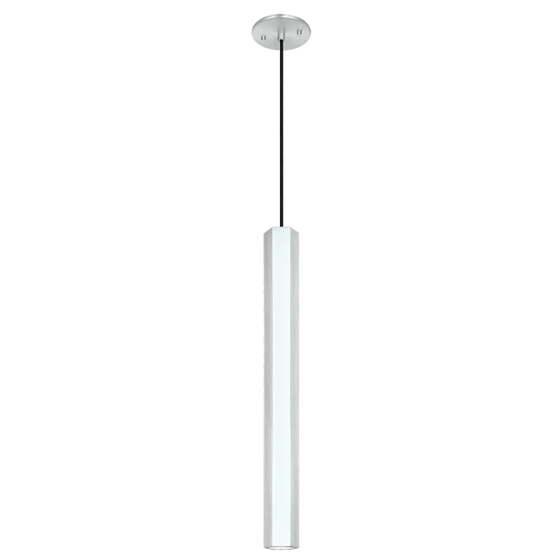 This modern drop pendant designed using a square tube has an industrial feel. When hung on its own or grouped, it will add a subtle design element. The Royce series comes in either an Aluminum or Oxidized Black finish with a black fabric cord.