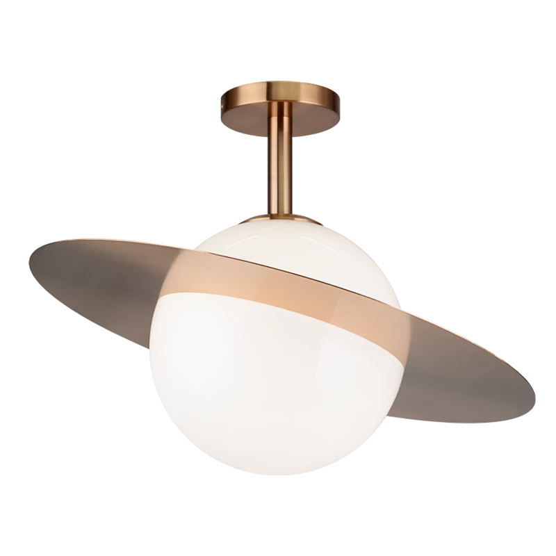 An elegant and chic light reminiscent of Saturn, features an adjustable disc which can be at a 60 degree angle. Both the pendants and flush mounts are outstanding fixtures to brighten up your home like the galaxy. Available in 2 finishes with an Opal glass.
