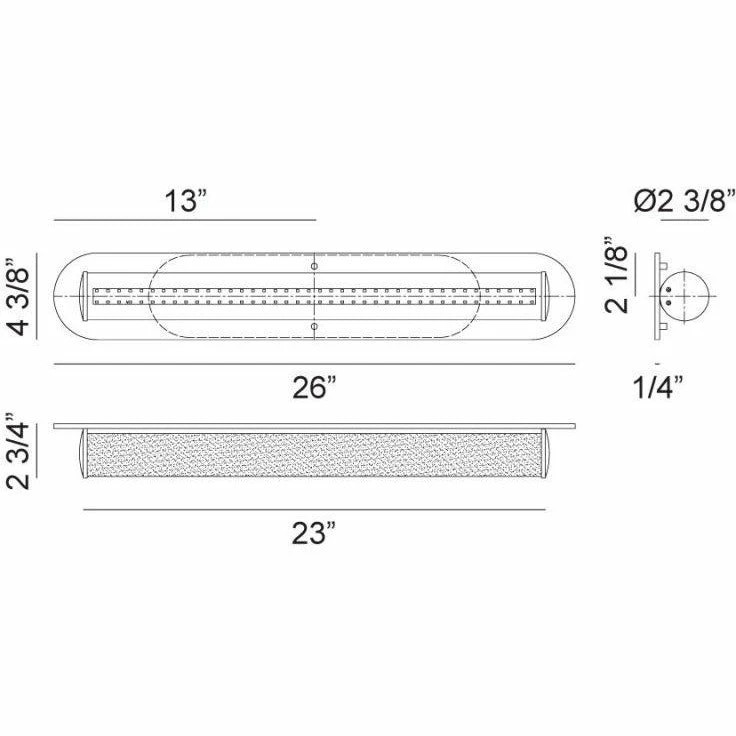 - Dimensions: 26″W x 4 3/8″H x 2 3/4″E