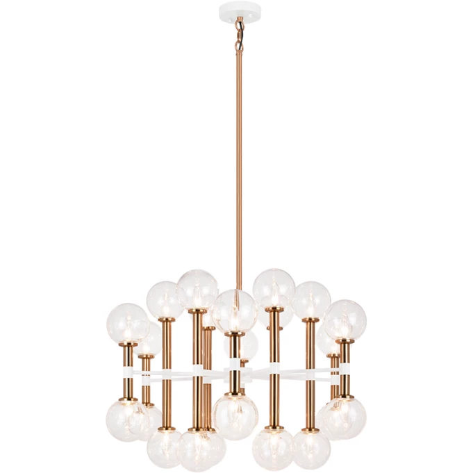 The abundant radiance of Stellar will give any room a bold, distinctive look. Inspired by the Mid-Century lamp post, this piece will stand out in any room. Available finishes: Aged Gold Brass with Matte White accents or Black with Chrome accents. A simple rod design completed with 4.3″ diameter Opal White Glass globes
