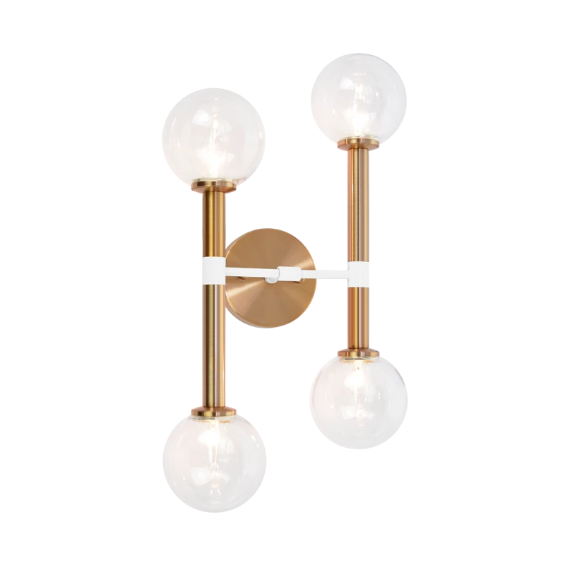 The abundant radiance of Stellar will give any room a bold, distinctive look. Inspired by the Mid-Century lamp post, this piece will stand out in any room. Available finishes: Aged Gold Brass with Matte White accents or Black with Chrome accents. A simple rod design completed with 4.3″ diameter Opal White Glass globes.