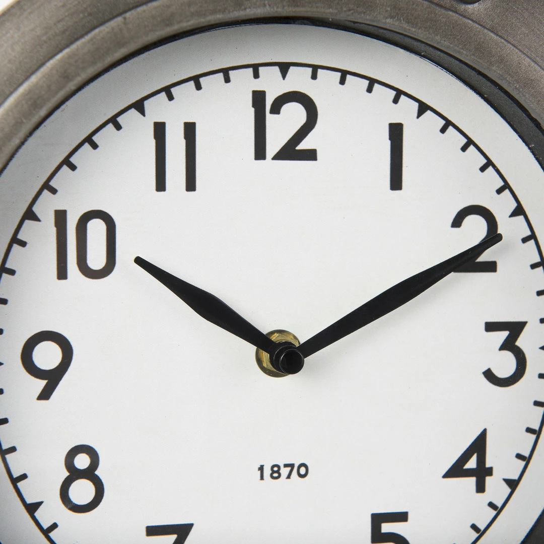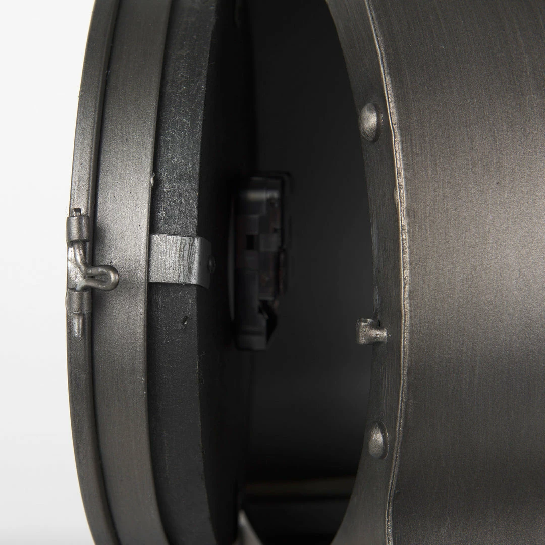 The Cameron is finished in a spectacular, distressed gun metal gray tone with a white face. This piece features matte-black polished metal hands which not only complement the overall design but also ensure that it is easy to read time from a distance.
