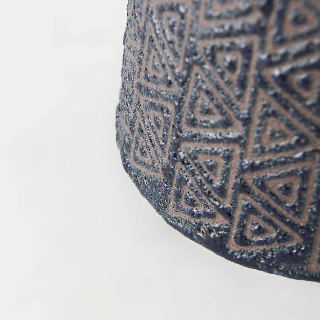 The Sega vase is made with a rich dark finish with intricately designed geometric patterns that absolutely captivating.