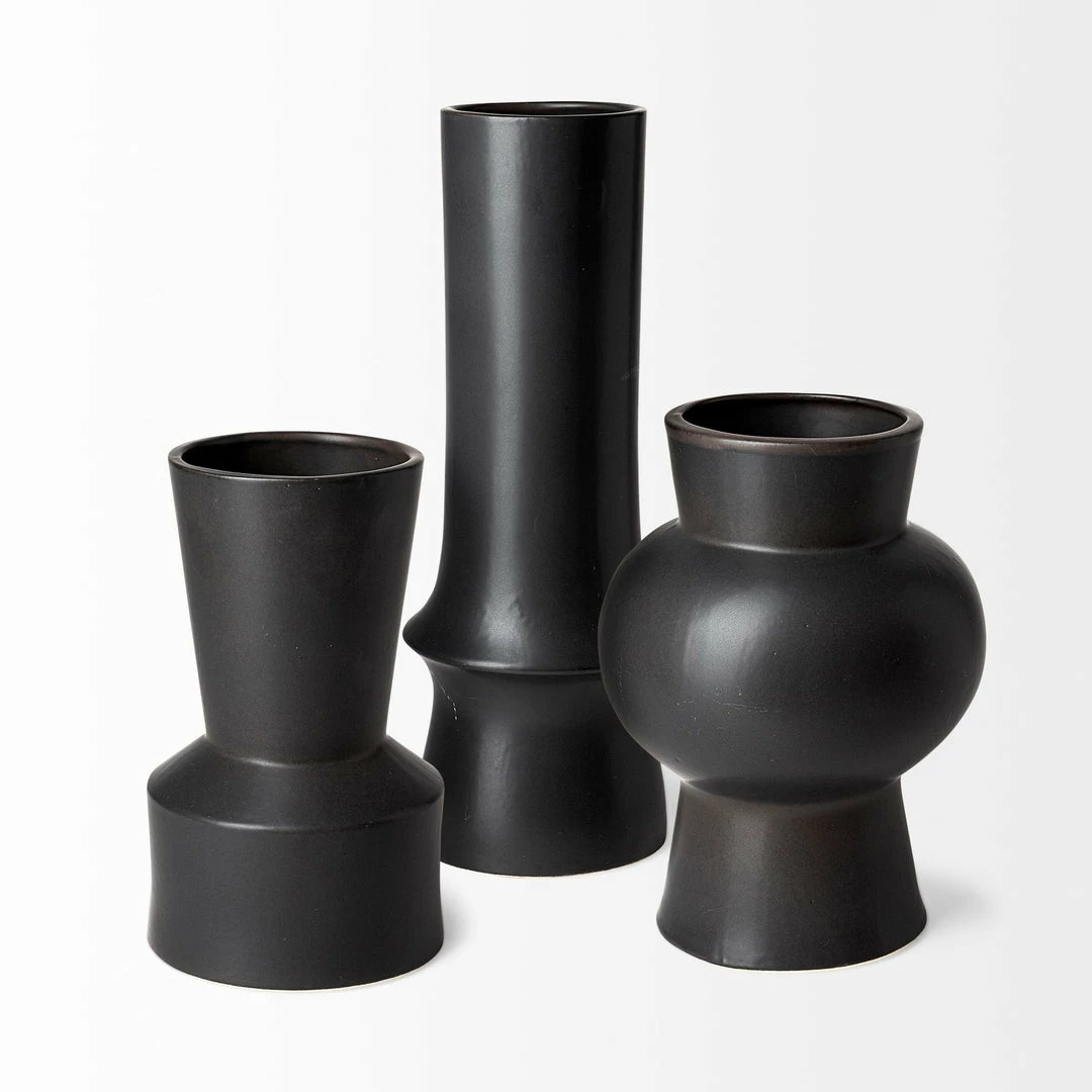 The Forage I, a stunning piece from the Forage series of uniquely shaped vases, is a stylish ceramic vase finished in a matte-black tone.