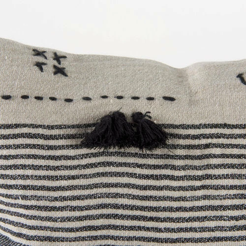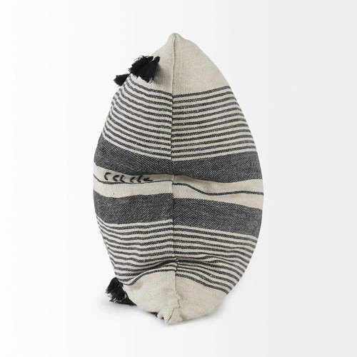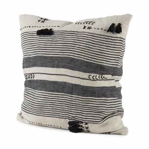 - Front: Beige, Black Stripes and Black Fringe