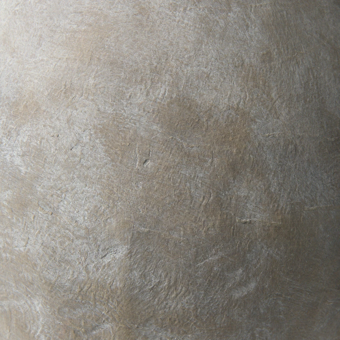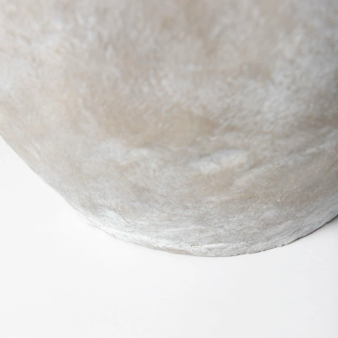 This ceramic vase features a rounded body with a wide, chipped-away opening. It’s a simple way to dress up countertops and shelves with color and texture.