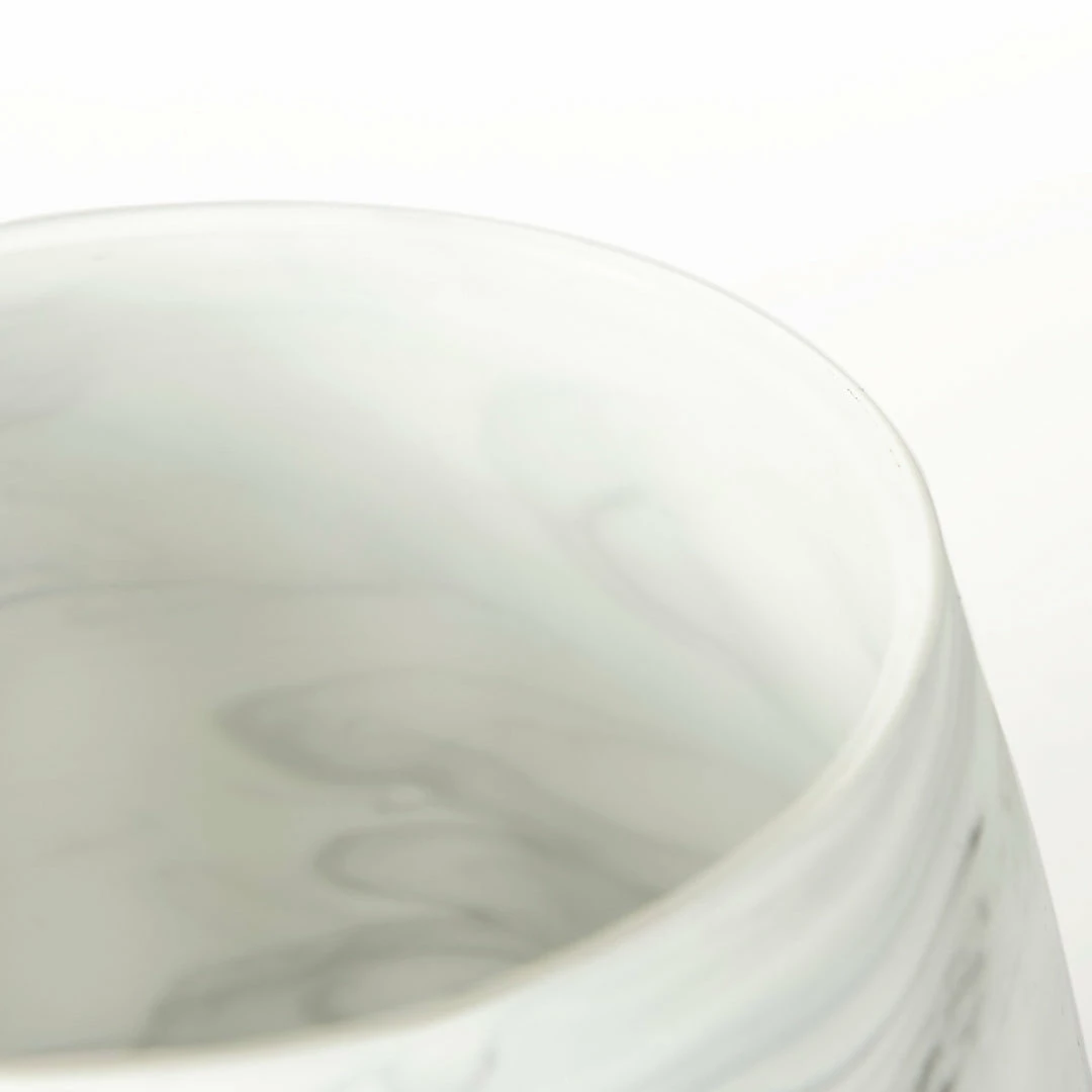The Voss is an elegant ceramic vase with a stunning, abstract, free-flowing pattern in monochromatic tones on the outer side.