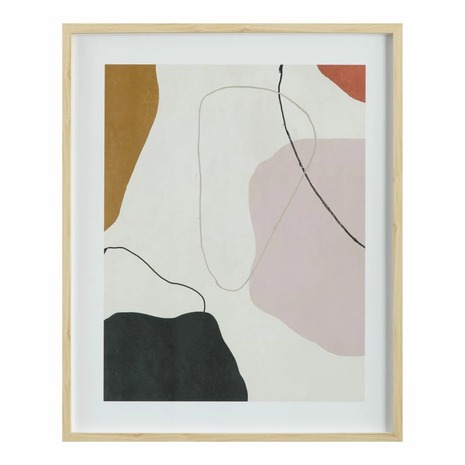 Abstract shapes and colors come together for artistic effect in the Liberated wall painting. Set in a high-quality frame, the ink print design adds a contemporary accent to any stylish interior setting.