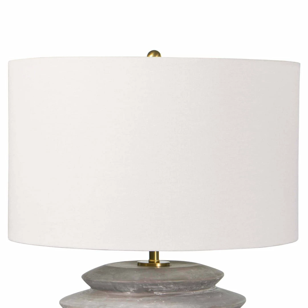 The body of this ceramic table lamp has an earthenware feel, making it stand like a modern heirloom in a living room or bedroom. A natural linen shade makes the whole look more refined. We love the proportions — both balanced and bold.