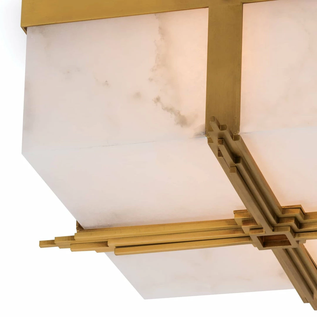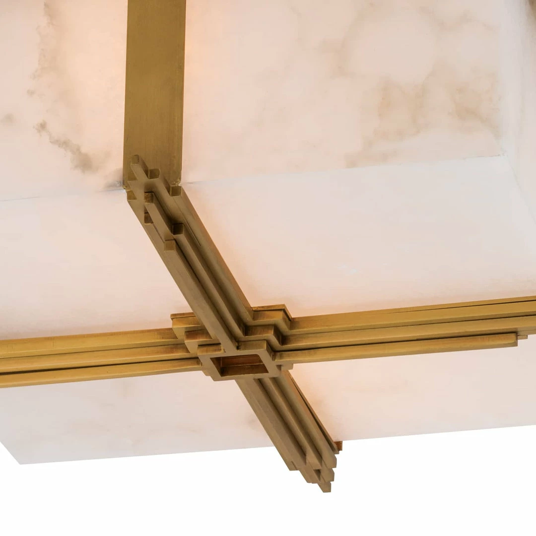 Unusually lightly colored, translucent, and soft stones. alabaster has been used throughout history primarily for carving decorative artifacts. The Gotham flush mount hovers away from the ceiling on a decorative cross bar, the light from within illuminating the natural veining and subtle coloration that define this prized material.