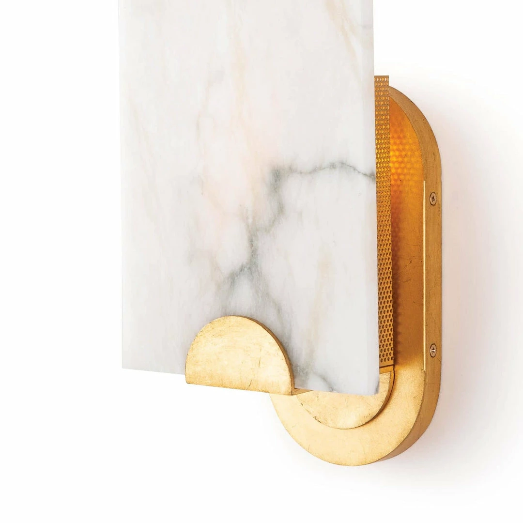 The Jonah sconce provides a warm sophisticated glow while the raw broken edge also gives it an organic element. This one of a kind sconce will create a diffused glow in a hallway or bathroom. Each piece is unique with individual veining and cracked edge.