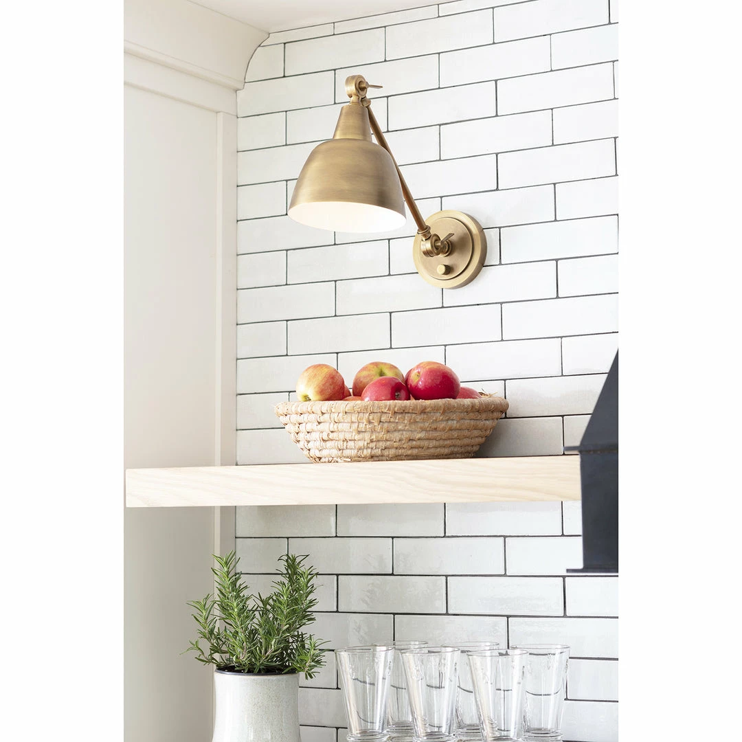 The Mercantile Sconce offers a wide mouth for ample lighting in a versatile style that can cross over from traditional to modern depending on the room it lives in. Place this adjustable task sconce over open shelving or cabinets in a kitchen, in an office or on either side of a bed for functionality with luxe style.