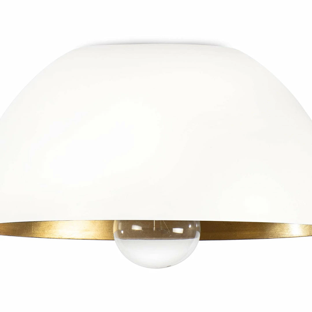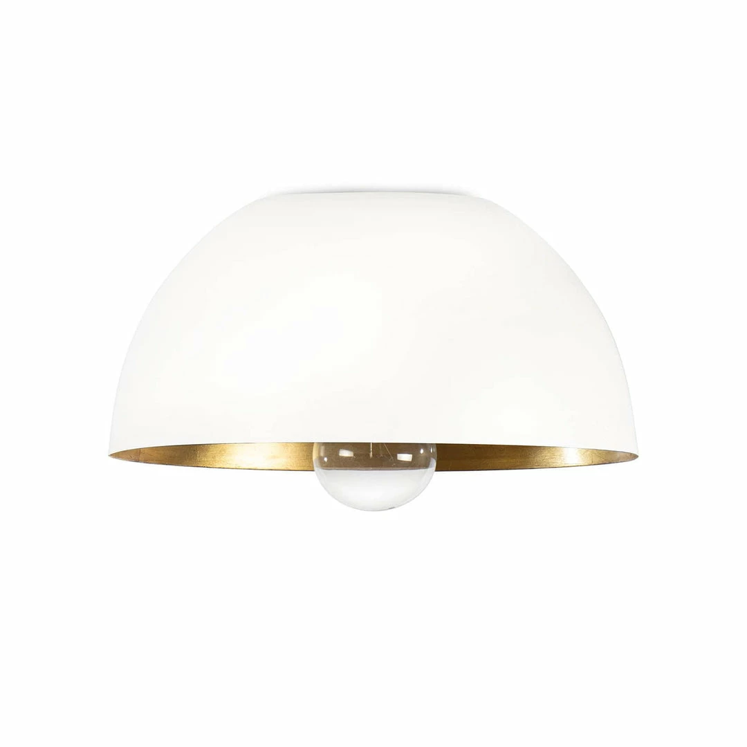 Sigmund’s simple domed shade brings sleek minimalistic appeal. Featuring a gold-leafed interior finish that gives your space a unique warm glow and sophisticated pop of contrast. Place the Sigmund Flush Mount in a hallway, over a sink or in a bedroom or low level ceiling area for added interest and chic style.