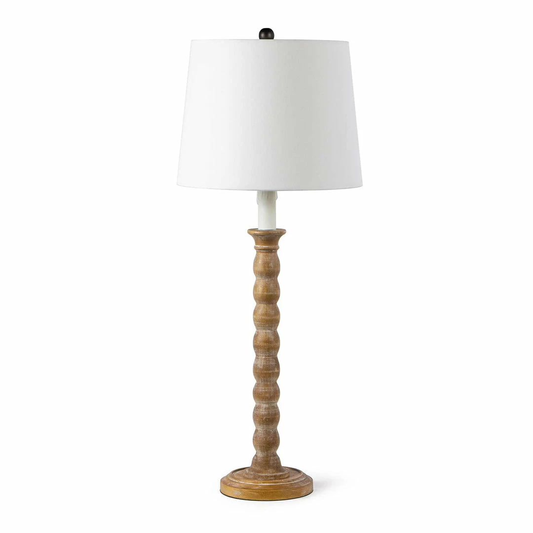 The Perennial buffet lamp is hand lathed from solid wood and finished for a rustic-chic effect. Faux drip wax details on the candle sleeve adds to the charm and relaxed coastal style that the Perennial brings. The Perennial Buffet Lamp is a perfect choice for sideboards, console tables or entryways.