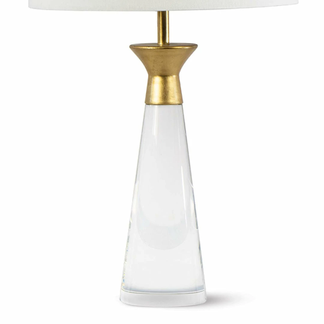 Simplicity is the Starling’s strong-suit. A classic conical crystal base is uniquely capped in a gold leafed metal. The simple silhouette is crowned with a subtly tapered, natural linen shade and matching gold ball finial. Place this traditional crystal lamp with a modern twist in a living room, bedroom, den or entryway.