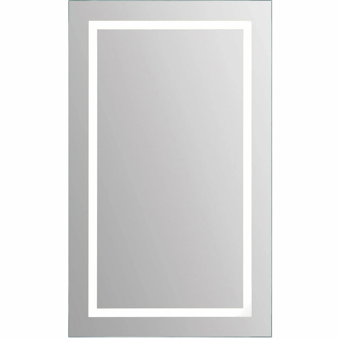 A rectangle border of LED light (4000 kelvin) shines through this mirror, making it both a beautiful piece of decor and a functional lit mirror. Can be surface or recess mounted.