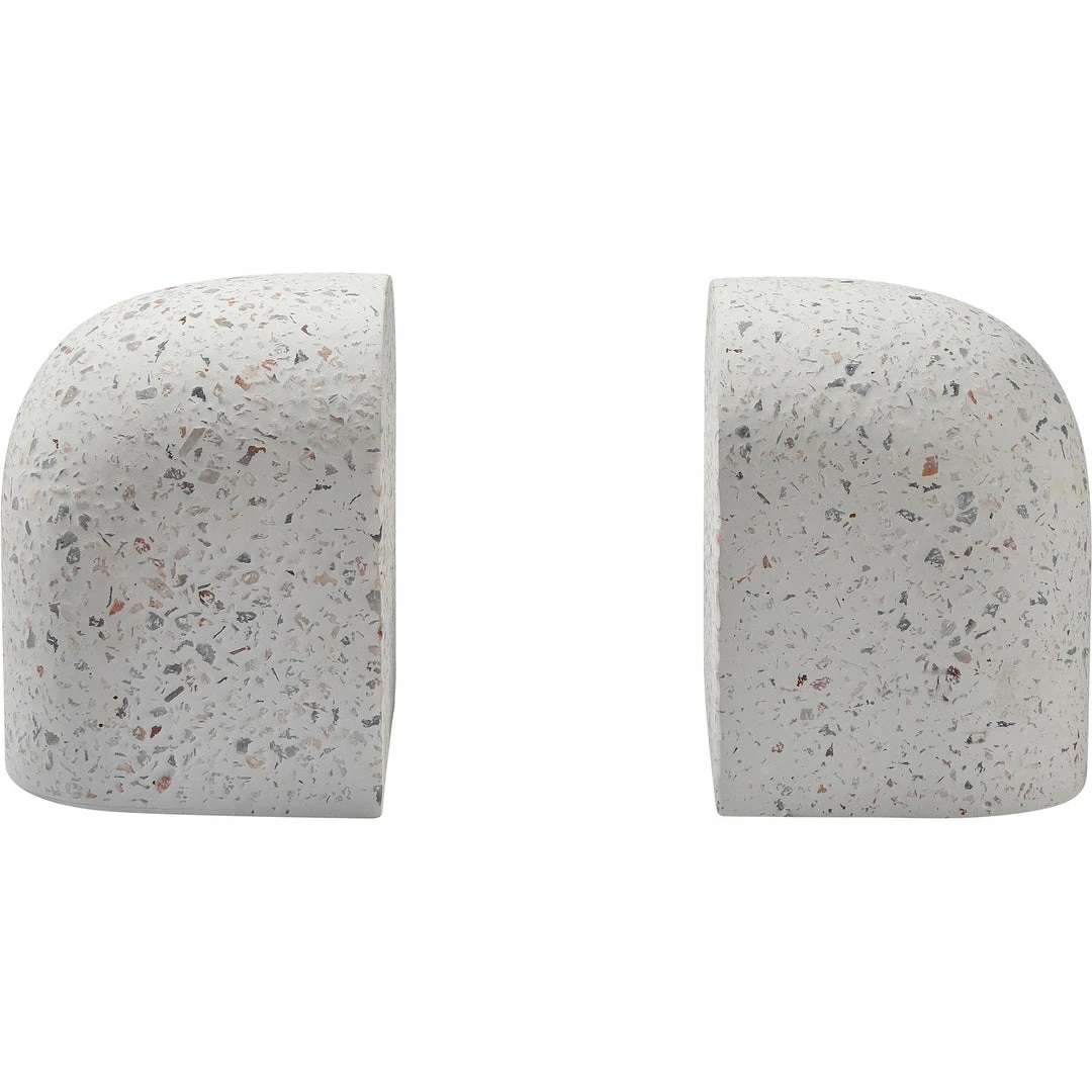 A design quality takes over the bookshelf when this set of bookends is set upon it. Offering utility in addition to effortless chic style, these Terrazzo pieces have the solid build one seeks to keep books of all sizes in alignment. Powder-coated in white with dark speckles sprinkled along their exterior, they can easily integrate into the contemporary or traditional interior alike.