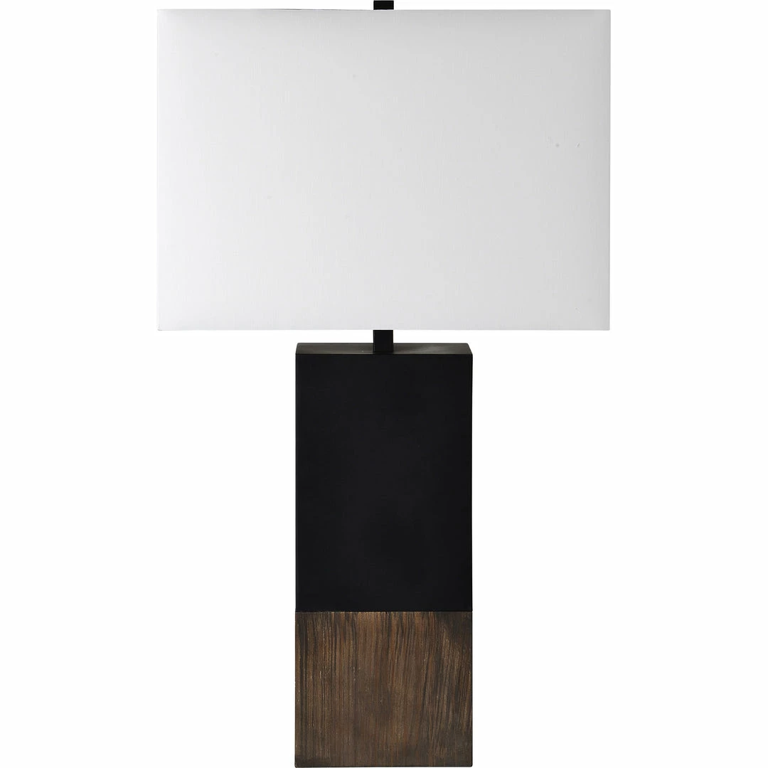 Table Lamp – Pine Wood – Natural Finish – Iron – Black – Powder Coated Finish – Off-White Cotton Shade – 3-Way Switch – Max. 100W – E26 Socket
