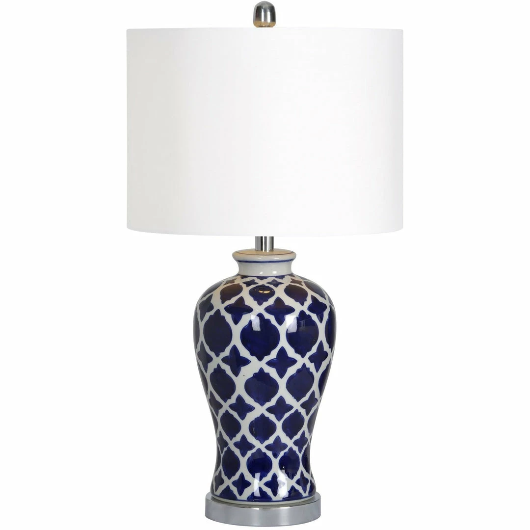 The Beryl Table Lamp, ceramic with an off-white cotton shade.