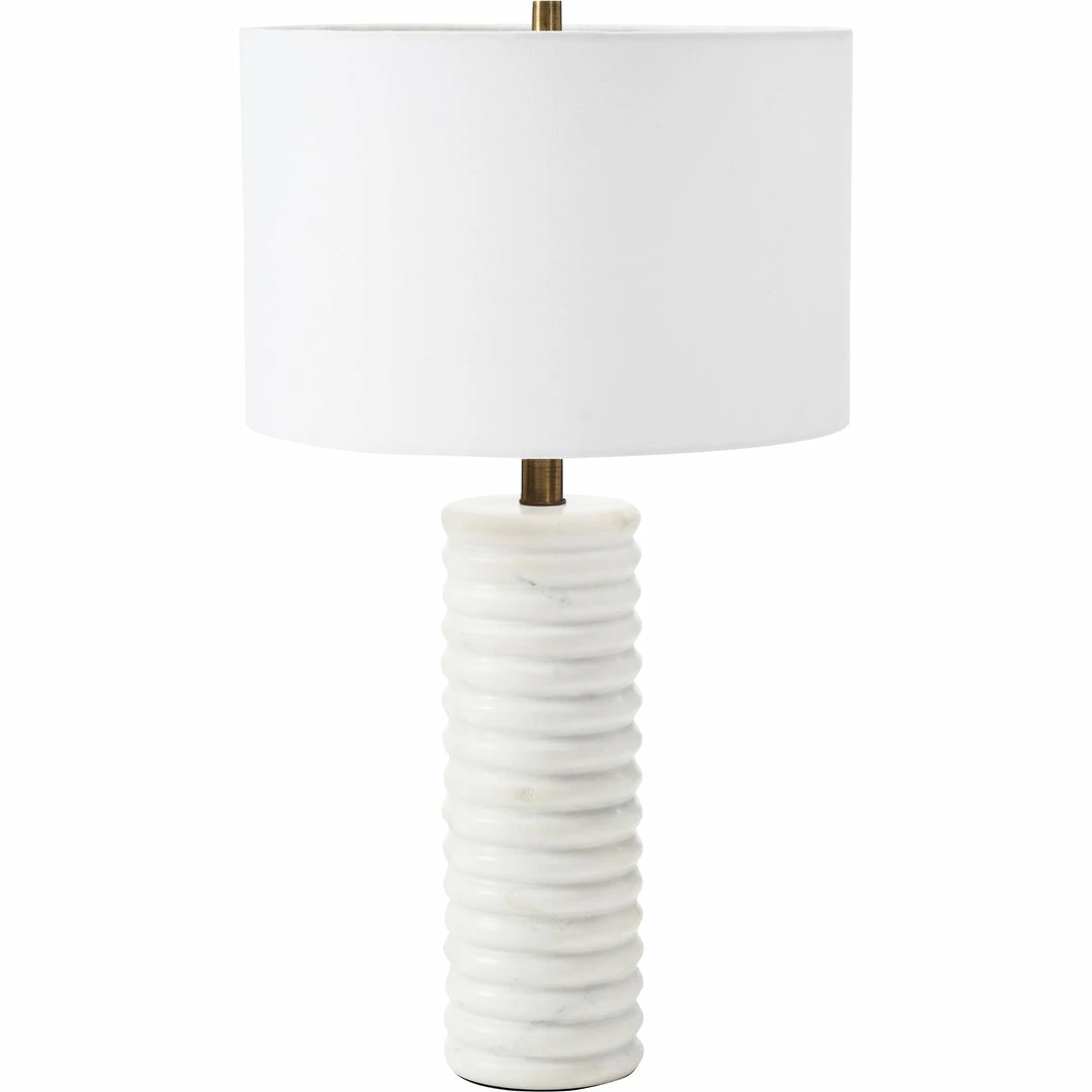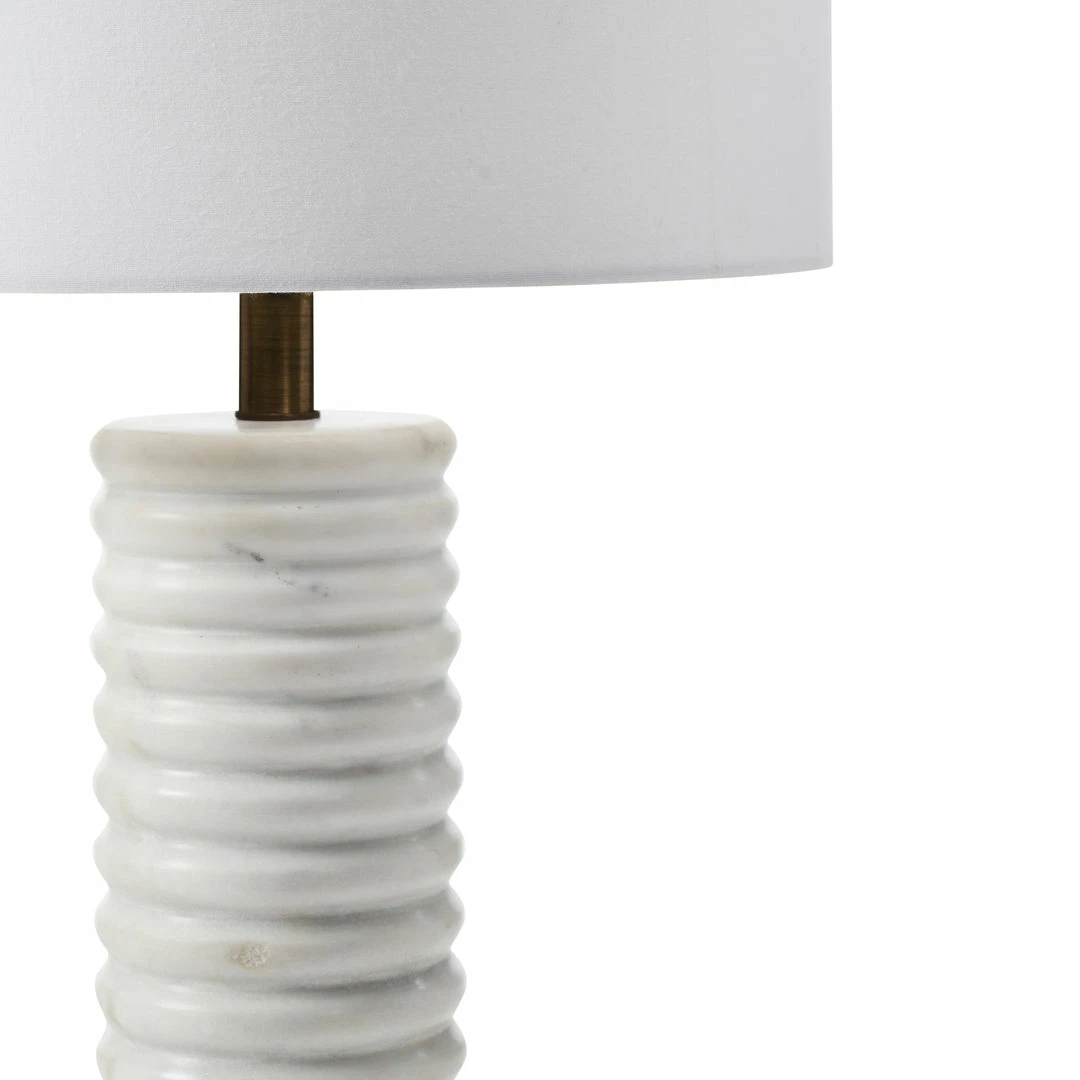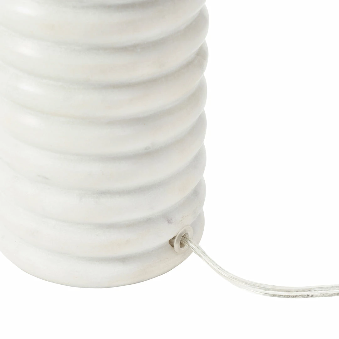 Architectural inspiration takes a new shape in this table lamp design. The natural marble structure brings dimension to the piece, while the off-white cotton shade adds a soft element to the mix. Placed in the entryway, living space or bedroom, its calming quality radiates to every corner of the room.Â