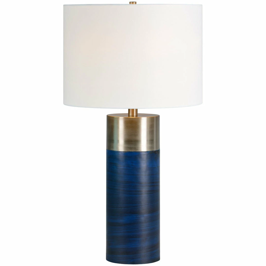 Glint Table Lamp, resin & metal with blue and antique silver plated finishes.