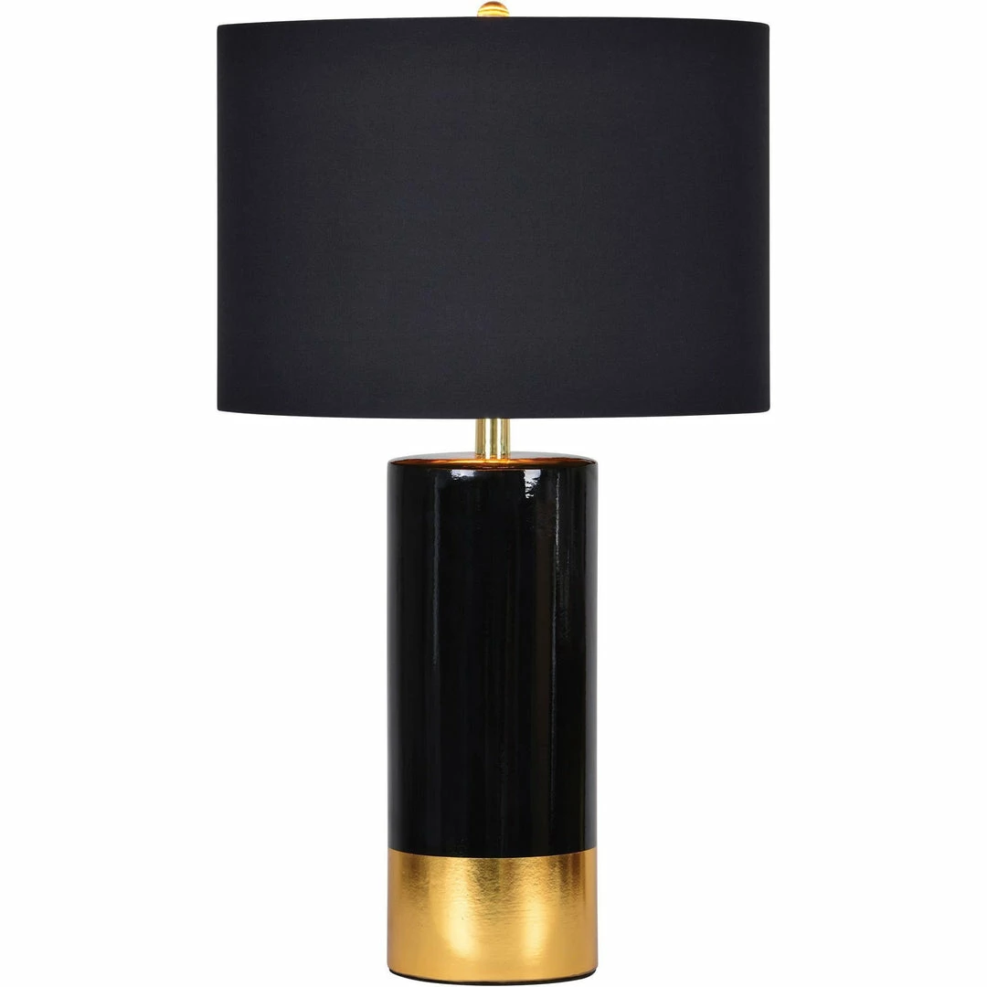 Tuxedo Table Lamp, black and gold ceramic with a black cotton shade.