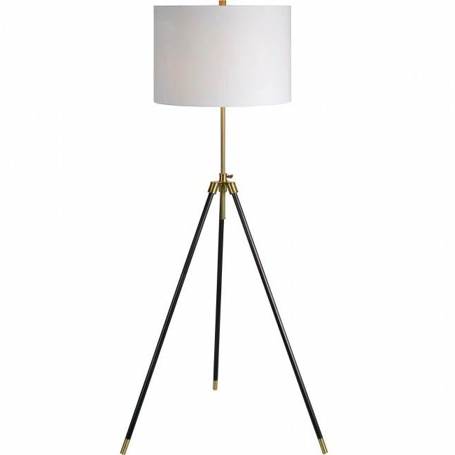 Floor Lamp – Iron – Antique Brass – Plated Finish – Off-White Cotton – Shade – 3-Way Switch – Max. 100W – E26 Socket.
