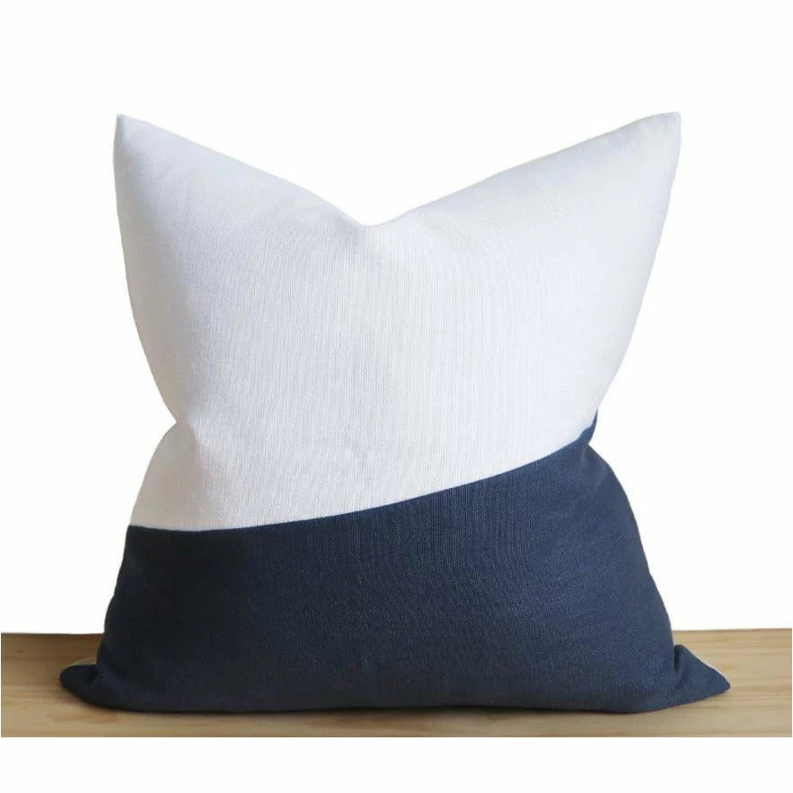 - Front: 100% Heavyweight European Linen, Navy and Optic White