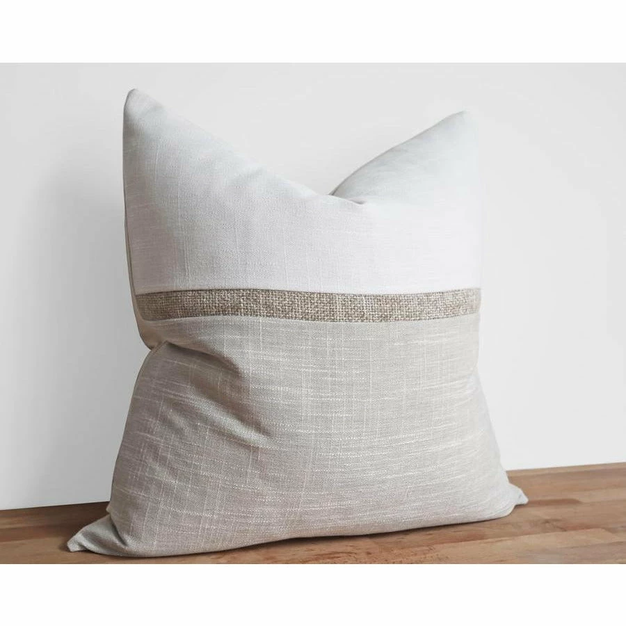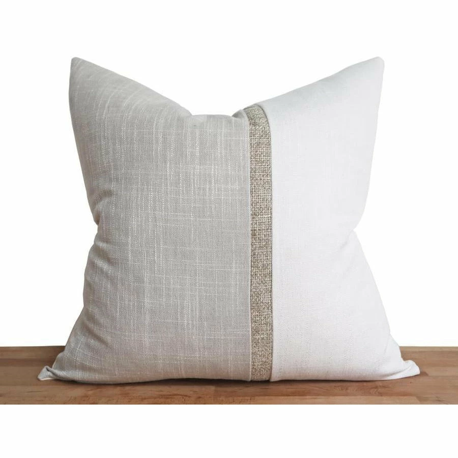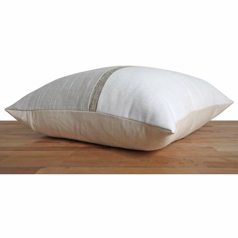 - Front: Ivory and Dove textured pillow cover featuring chic off center ‘Bilbao’ accent