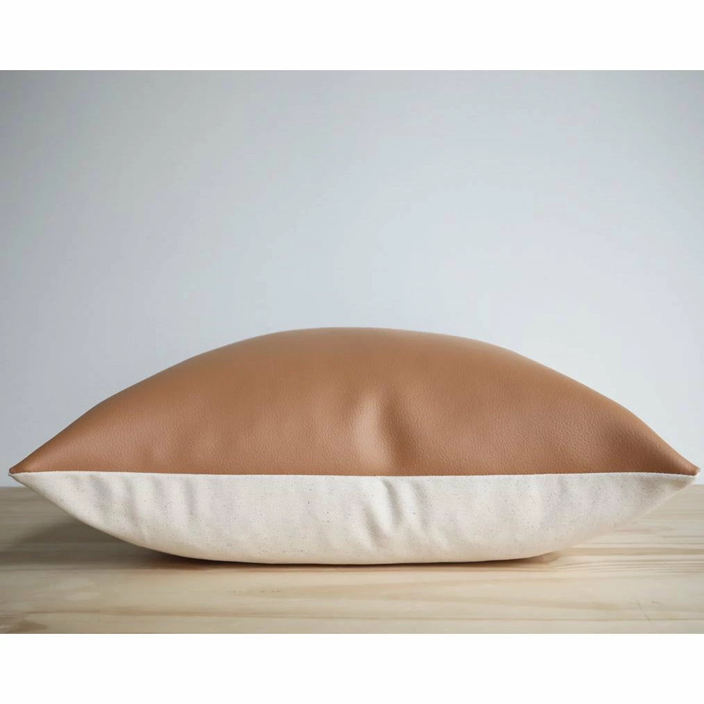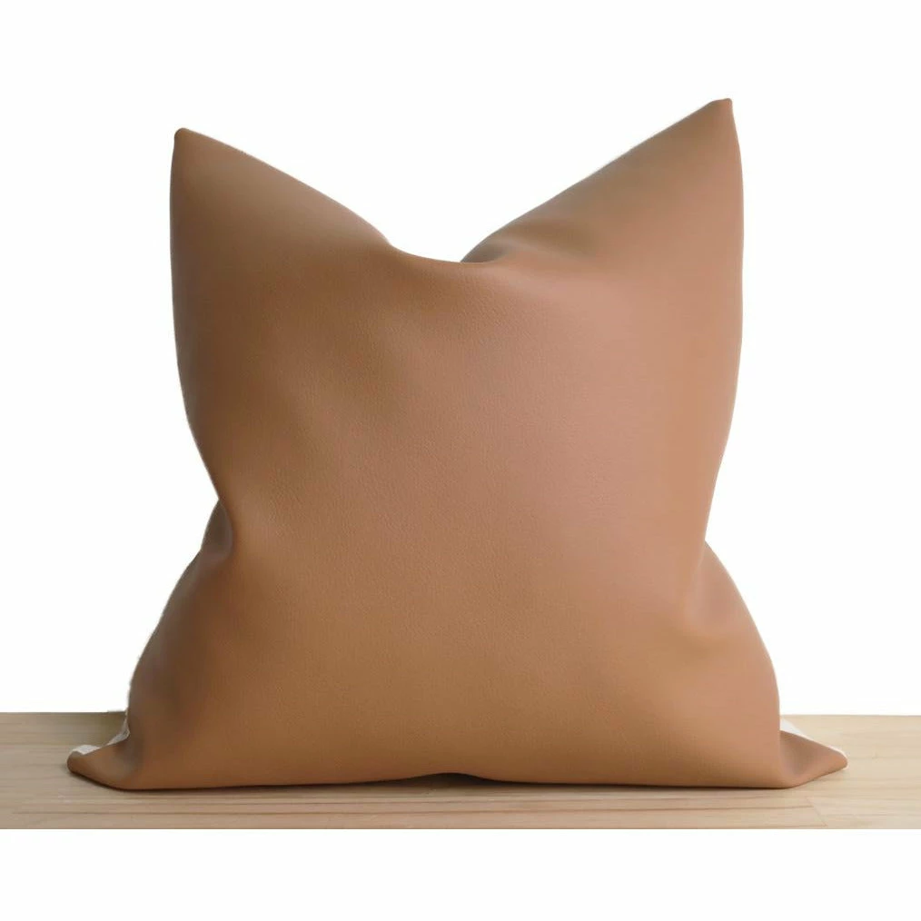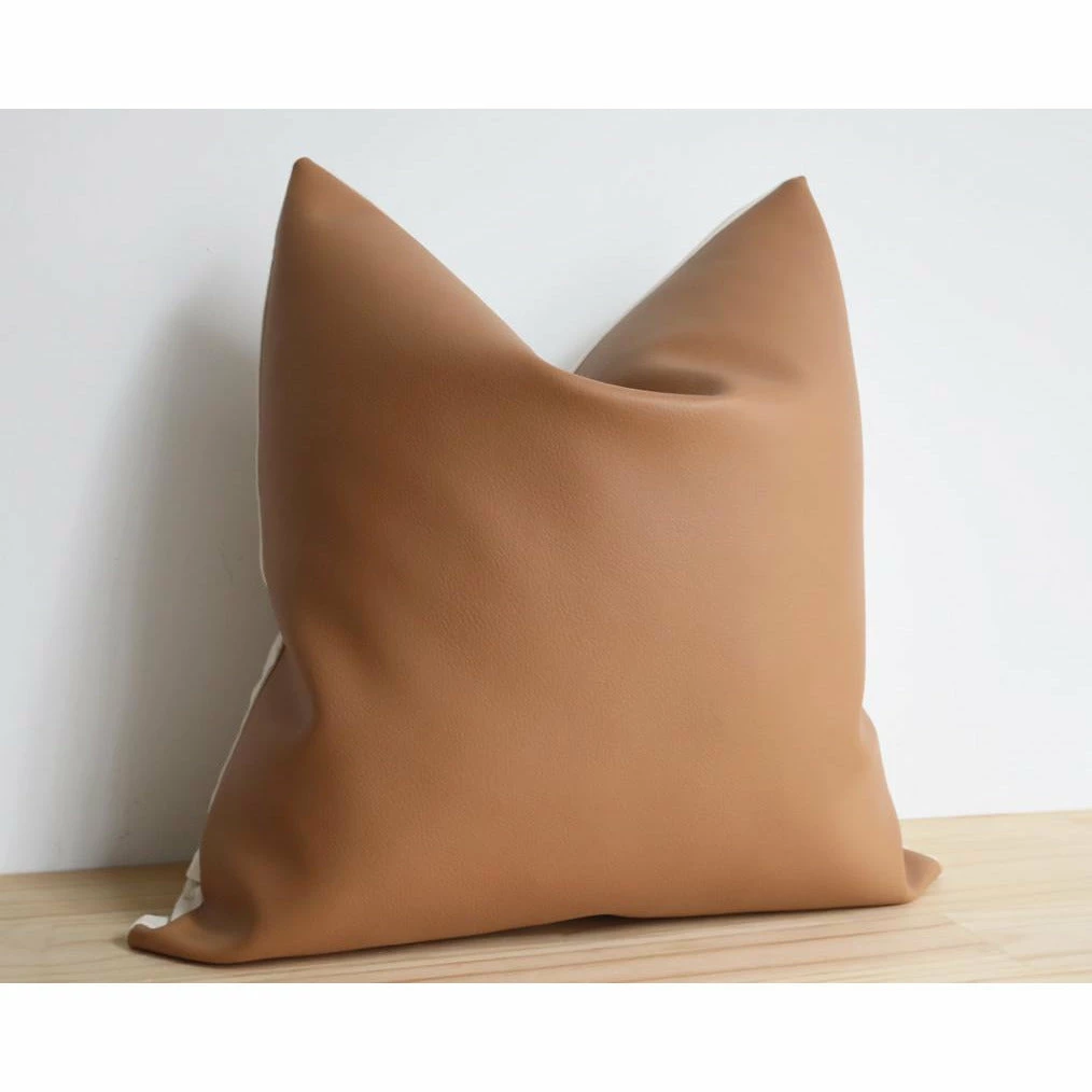 We suggest using a pillow insert anywhere between 1-2 inches larger than pillow cover for a stuffed look. (ie: 20×20 insert for a 19×19 cover). Care: Spot clean fabric. Wipe faux leather clean with a damp cloth.