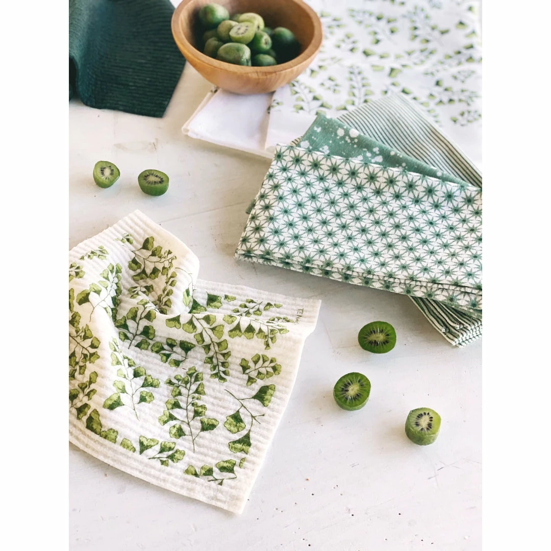 With a bright and fresh design, this Swedish Sponge Cloth is sure to brighten up your kitchen and your day! The sponge cloth has been a staple in Swedish kitchens for over 60 years and can absorb 15x its own weight in liquid. These eco-friendly sponge cloths will clean all kitchen and bath surfaces without streaking. Great for granite, stainless steel, laminate and glass top stoves. The cellulose-cotton composition is 100% biodegradable and can be thrown away with compostable waste. The cloth is naturally anti-bacterial due to its quick drying ability and can be washed in the dishwasher or washing machine (do not put in the dryer).