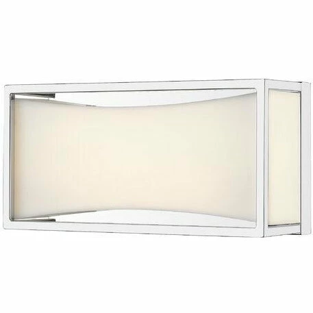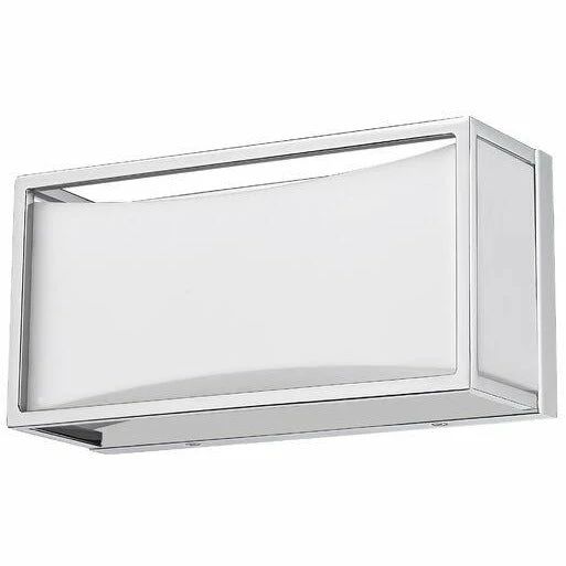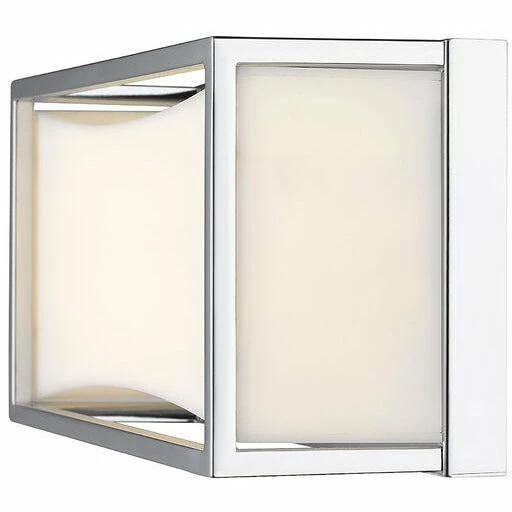Sleek, gleaming lines of chrome finish metal give this one-light vanity light a clean, modern look. Perfect for a powder room, it boasts a delicate, frosted white shade that diffuses the light into a soft, graceful glow.