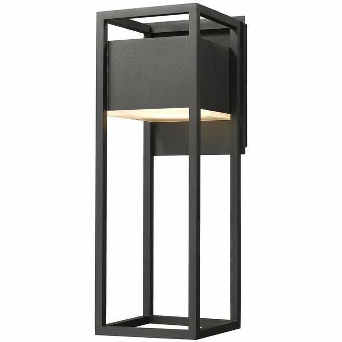 From the stylish Barwick collection comes this contemporary outdoor wall sconce, ideal for mounting inside a porch entryway or as a pair flanked beside a patio sliding door. Its airy rectangular aluminum cage features a deep black finish, lending itself perfectly to any existing facade color schemes and materials. This understated wall sconce also comes with an energy-efficient LED-integrated lamp tucked inside a warm, etched glass plate that diffuses the light naturally.