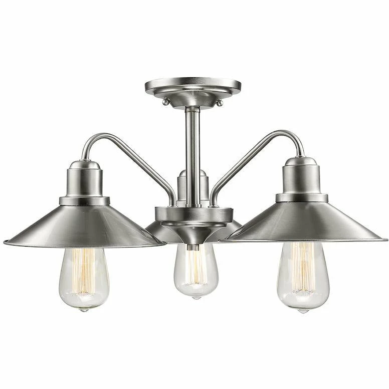 Vintage styling complimented with slick finishing deliver an up-to-date antique look. Brushed nickel fixtures are accented with vintage bulbs creating a perfect pairing.