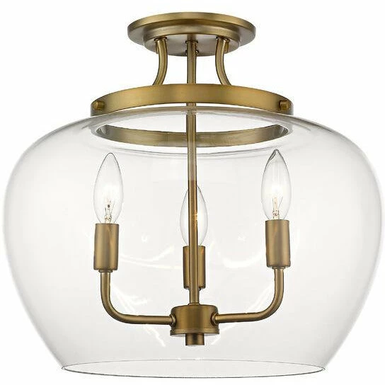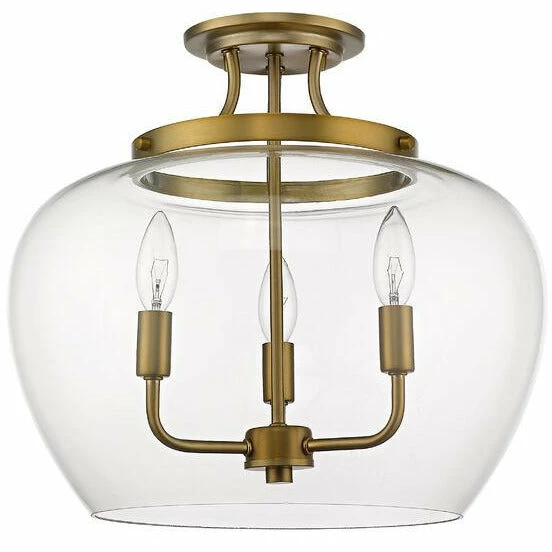 Designed with modern elegance in mind, this olde brass semi-flush mount ceiling light is a stunning home decor upgrade. Three lights beneath a clear glass shade are suspended from a sleek metal frame to create a magnificent display of light.