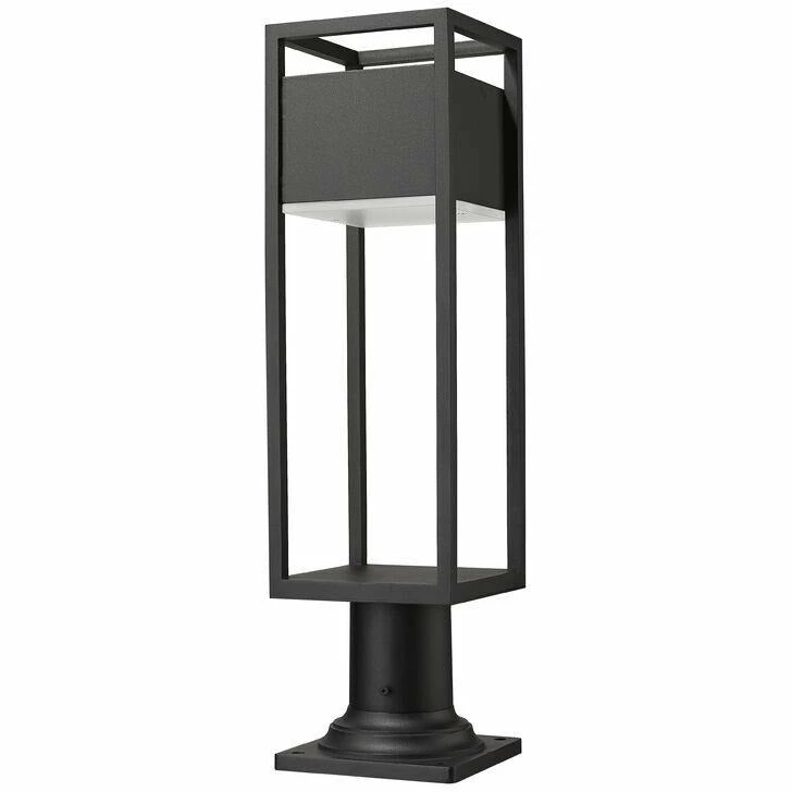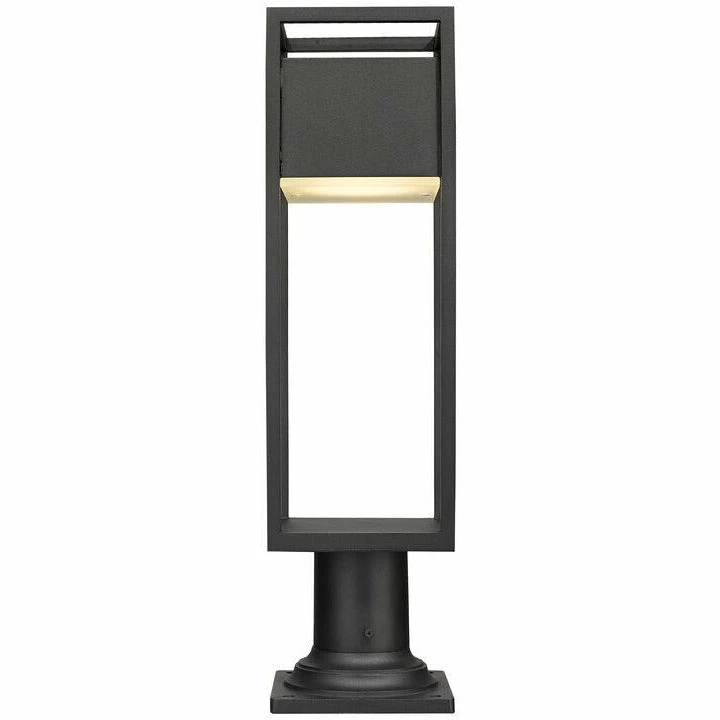 Secure this modern outdoor pier mounted fixture to walkway columns and deck corners for a warm, soothing glow around your veranda or exterior entertainment space. From the Barwick collection, this outdoor light fixture features an open and airy, rectangular aluminum frame in a deep black finish, lending itself nicely to your home’s existing facade’s color palettes. This pier mounted lantern also offers an updated, sophisticated design with its etched glass plate, which covers an energy-efficient LED-integrated lamp.