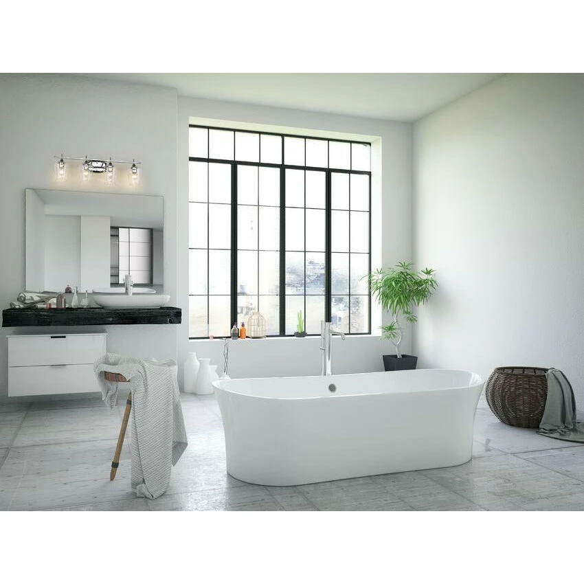Upscale sophistication with a Mid Century Modern vibe tells the story of this elegant four-light vanity light. A blend of delightful materials offers stunning large glass shades with bright Chrome finish metal, delivering a radiant palette that embellishes the look of a master or guest bath suite.