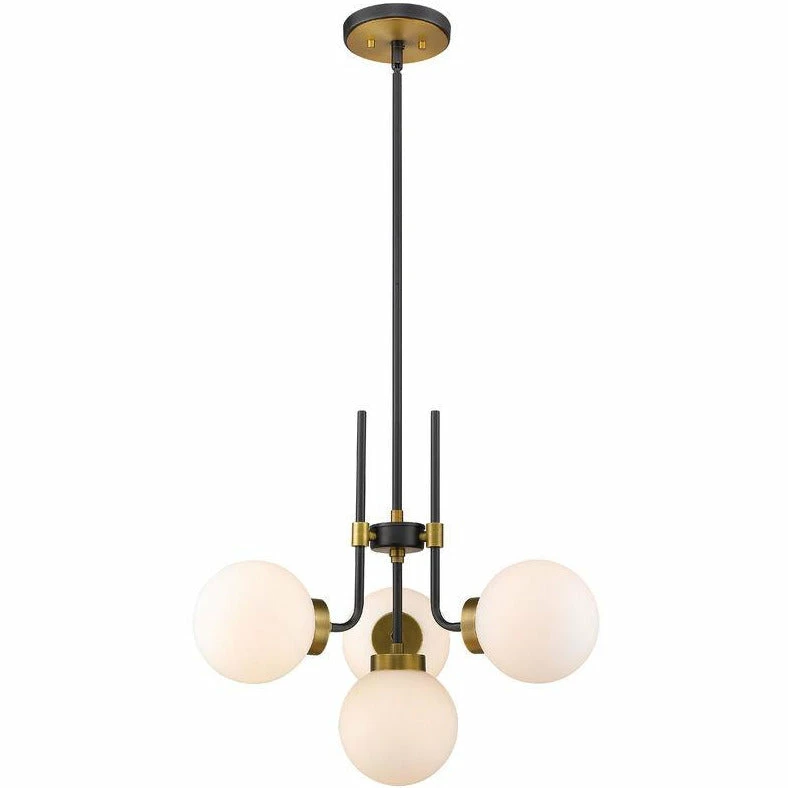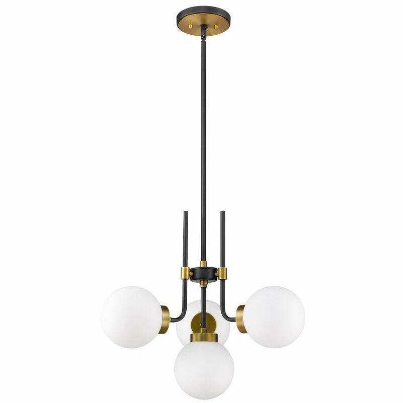 Enhance your favorite room with the rich tones of this four-light chandelier. It’s fashioned with a matte black and olde brass finish and opal shades that deliver all the warm glow you want. It will add a touch of ambient brilliance to any space in the home, whether it’s the dining room, foyer, or kitchen.