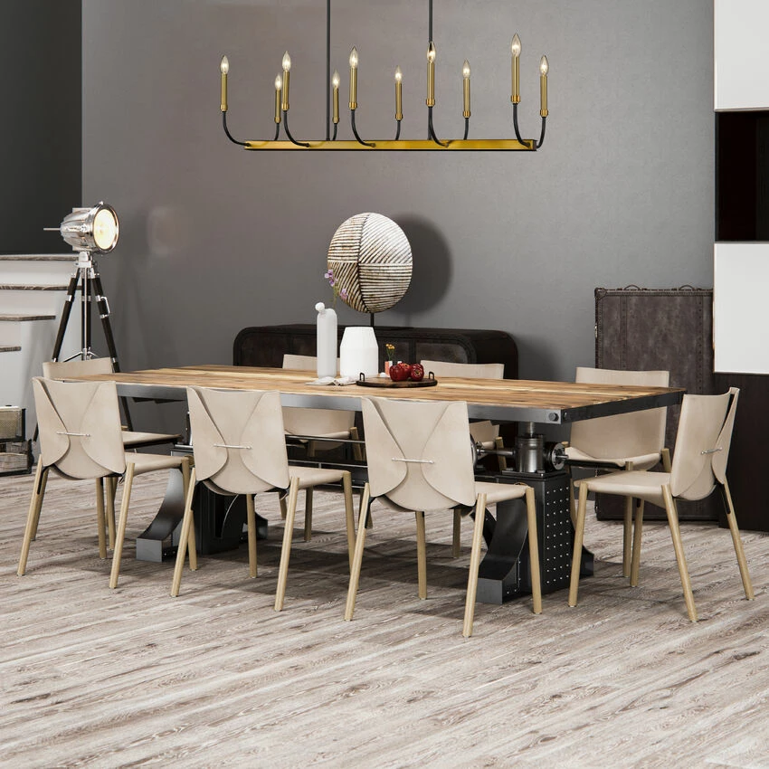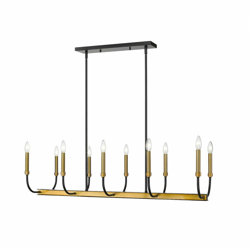 This fabulous two-tone ten-light island/billiard light is the perfect addition to your home lighting collection. It’s crafted in a matte black and olde brass finish and features the lights in a candle-like design. It’s the ideal light for the dining room, foyer, kitchen, or entertainment room.