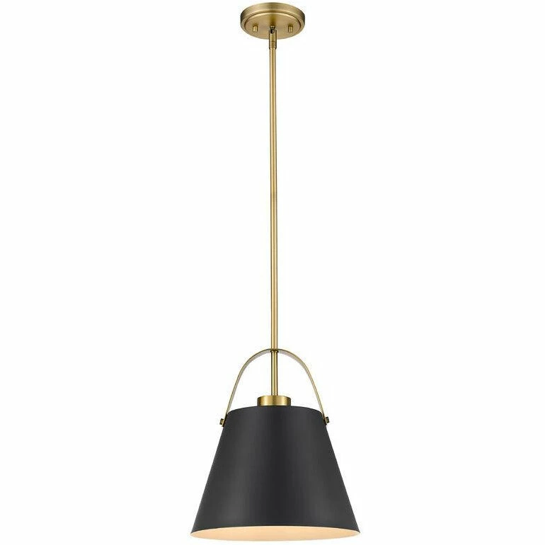 Incorporate design-forward illumination into a decadent contemporary décor scheme with this gorgeous one-light pendant. Bring targeted lighting to a dining or living area with a sleek fixture fashioned from Matte Black and Heritage Brass metal, with a classic angled shade.