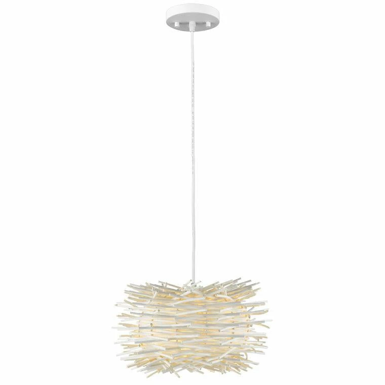 A truly inspiring, fresh ambiance awaits in this willow and brushed nickel one-light pendant. An artfully and meticulously arranged sculpture of natural willow wisps join to offer a stylish look offset with sleek brushed nickel steel, creating a unique display fit for the most tasteful metropolitan setting.