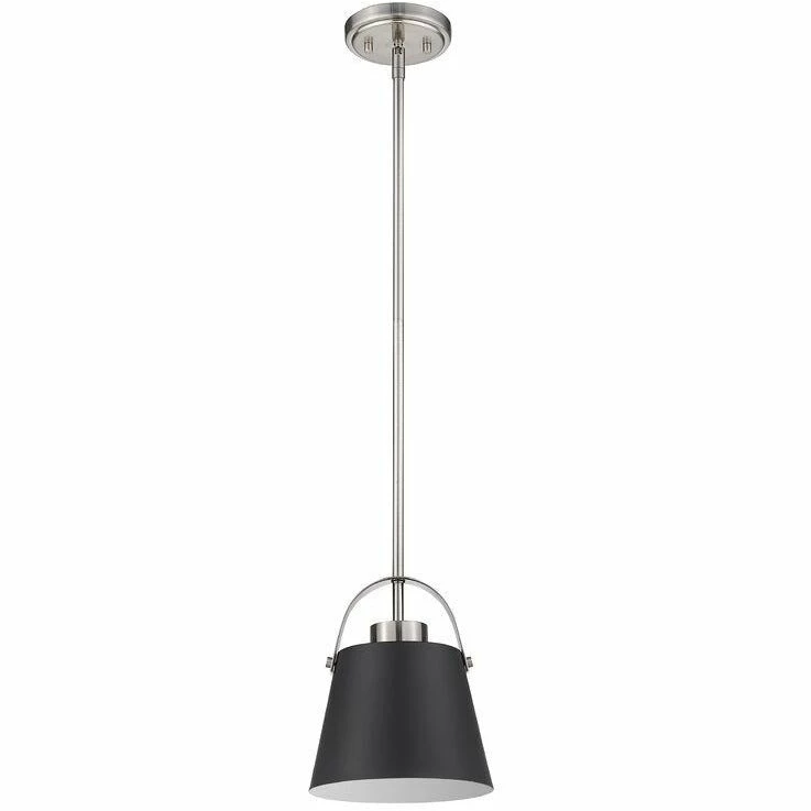 Incorporate design-forward illumination into a decadent contemporary décor scheme with this gorgeous one-light mini-pendant. Bring targeted lighting to a compact nook or reading space with a sleek fixture fashioned from Matte Black and Brushed Nickel metal, with a classic angled shade.
